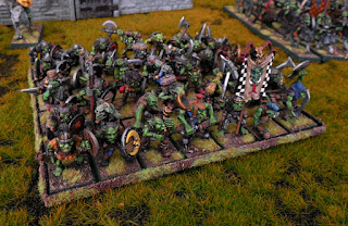 Back in the beginning of this blog I first posted these guys. This is my primary regiment of standard everyday Goblins that I've run with for years. And for years they've only numbered at 30 troopers. I finally got around to re-organizing them. Pulled a few out to join other upcoming units and padded up the unit to a head count of 42 Gobbos now.